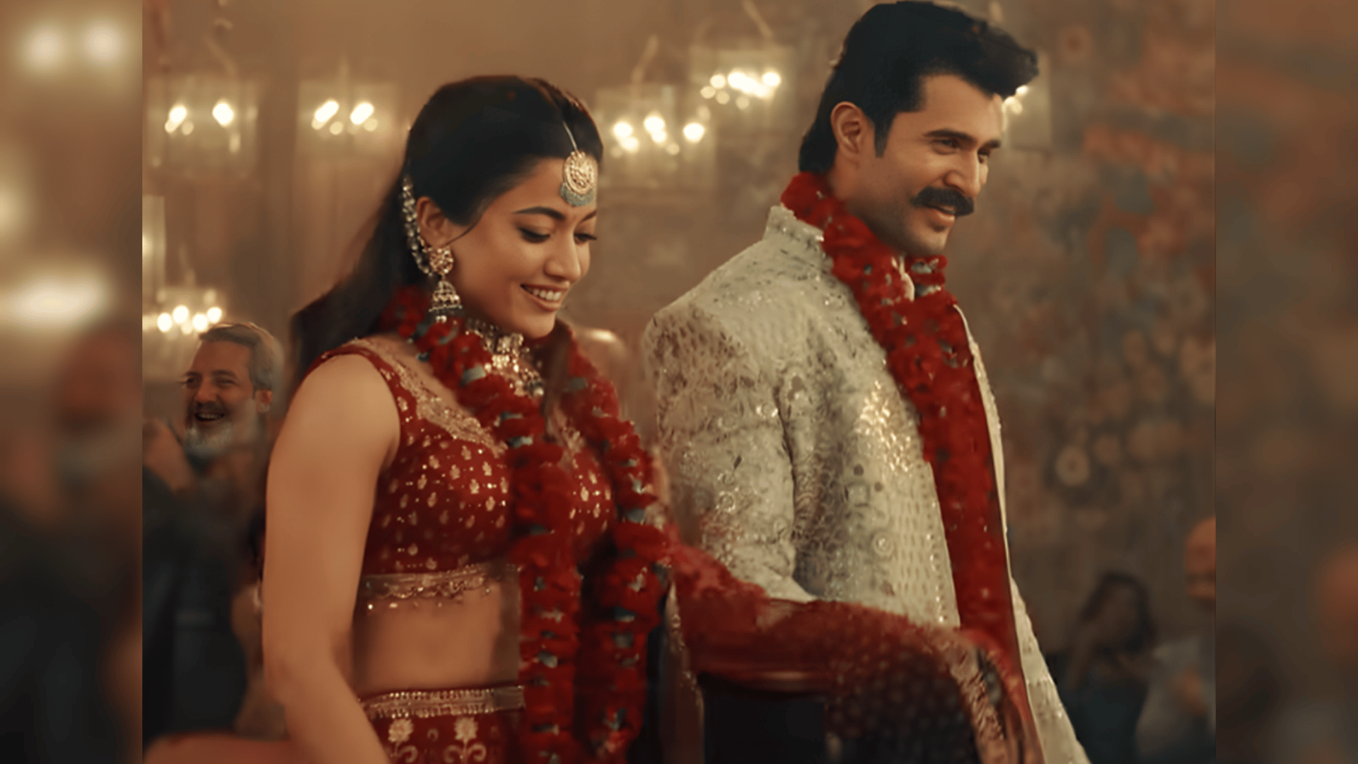 The film itself is designed like a playful musical narrative. Vijay and Rashmika banter about their outfits, briefly “break up” over mismatched wedding looks, and then reunite in coordinated ensembles.